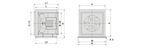 四、HLF型風(fēng)機(jī)外形尺寸(單位:mm)