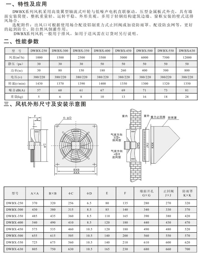 廣泛適用于工礦企業(yè)、民用企業(yè)、民用建筑、體育館、畜牧業(yè)、各種娛樂場所的壁式排風