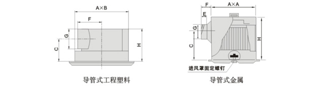 注:導(dǎo)管式金屬殼體通風(fēng)器可根據(jù)用戶要求制成變風(fēng)器(高、中、低三檔)。