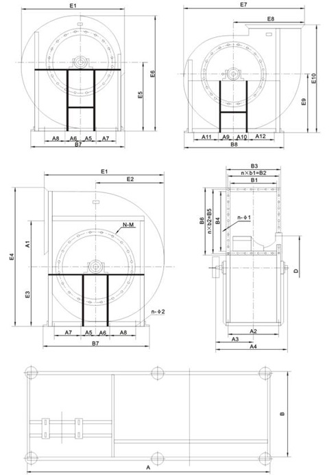 (九)、4-79系列14E-16E離心風(fēng)機外形尺寸表