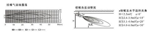 注:式中Qx-射程X處射流誘導(dǎo)風(fēng)量,QO-誘導(dǎo)風(fēng)機(jī)的風(fēng)量;