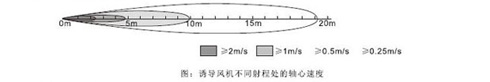 當(dāng)末端風(fēng)速為0.5m/s,X=10m時(shí),風(fēng)量為650m3/h的一臺(tái)誘導(dǎo)風(fēng)機(jī)可誘導(dǎo)風(fēng)量達(dá)至17560m3/h